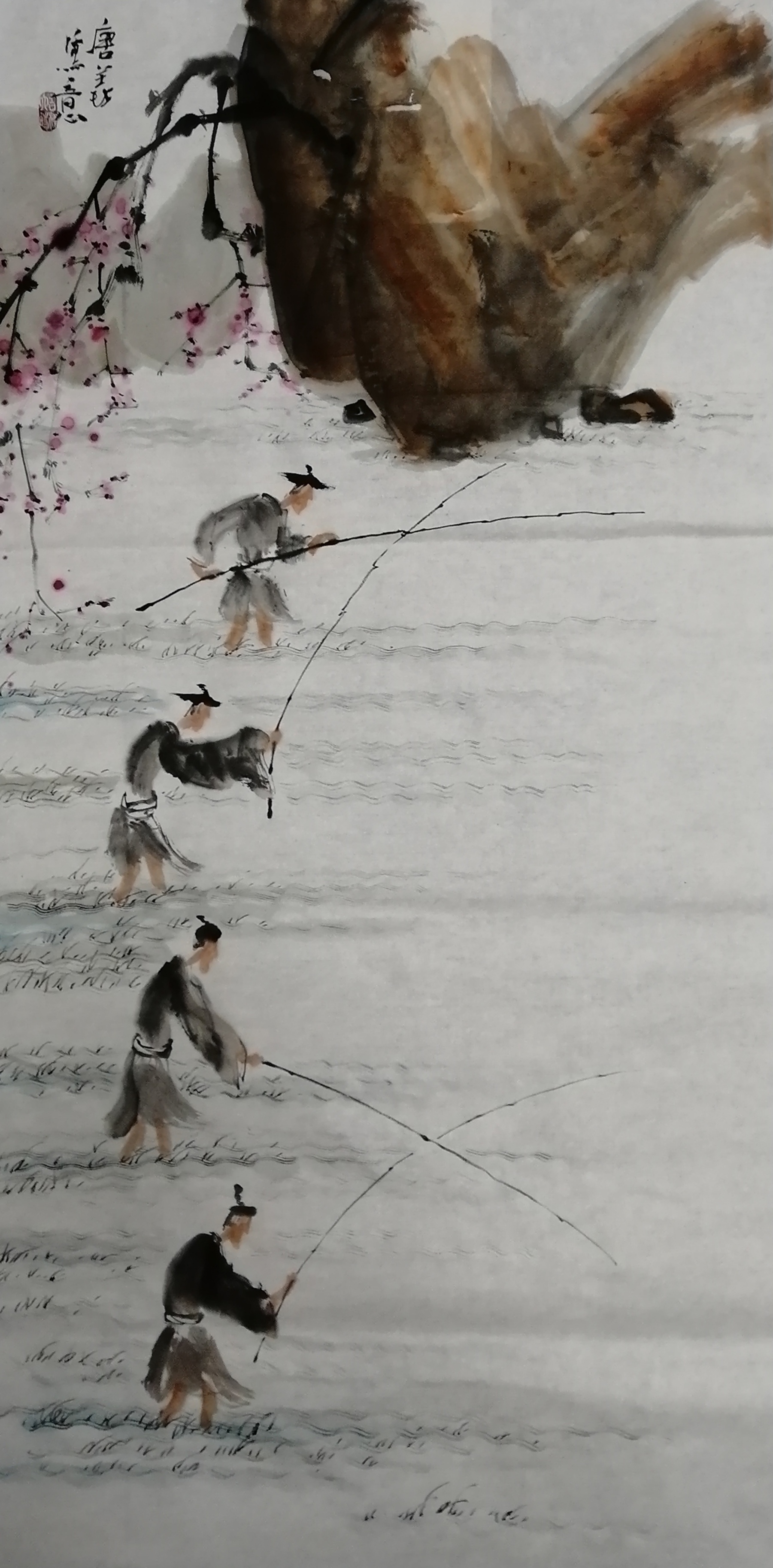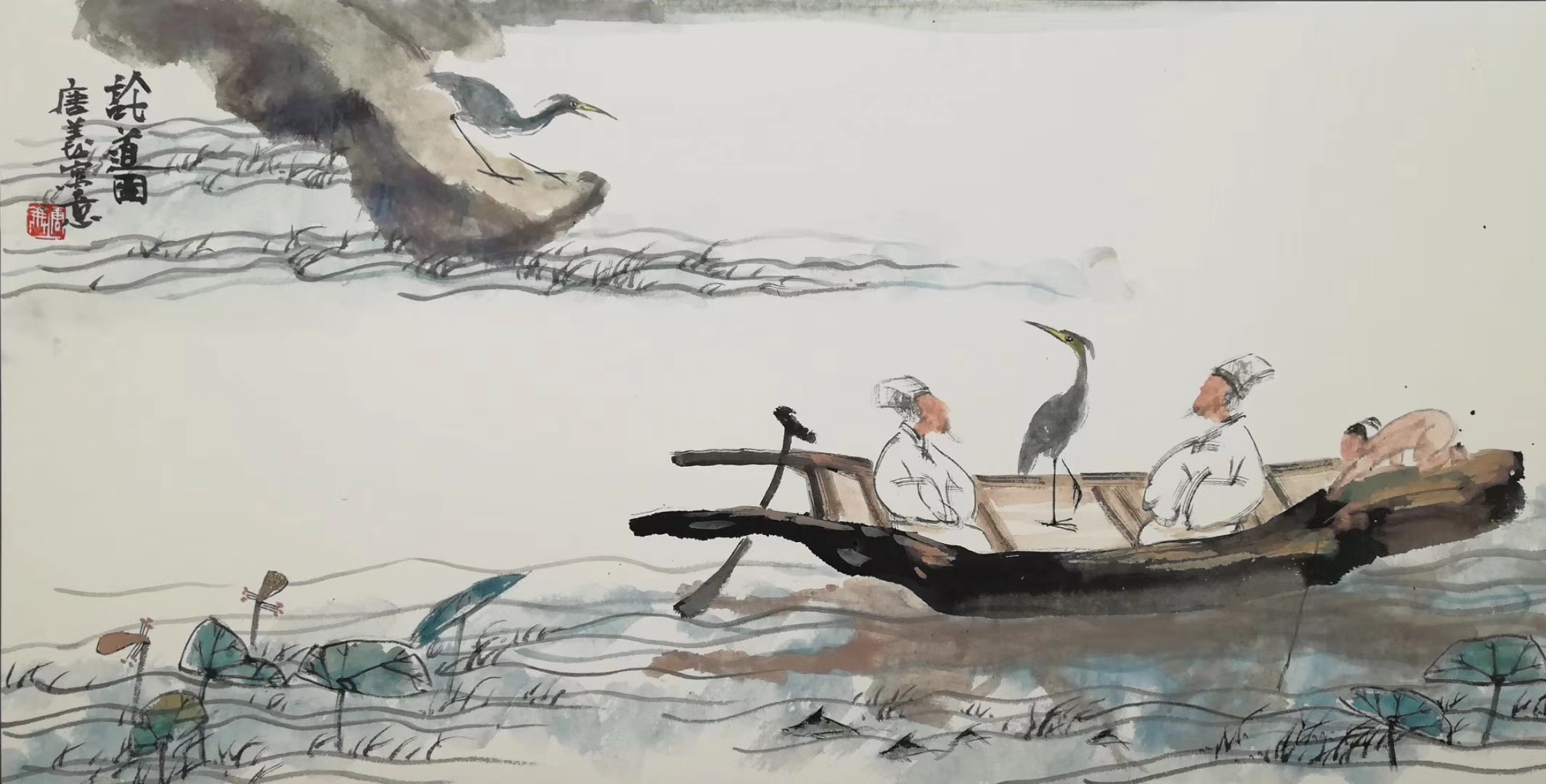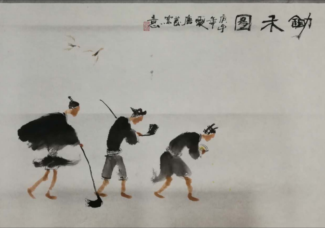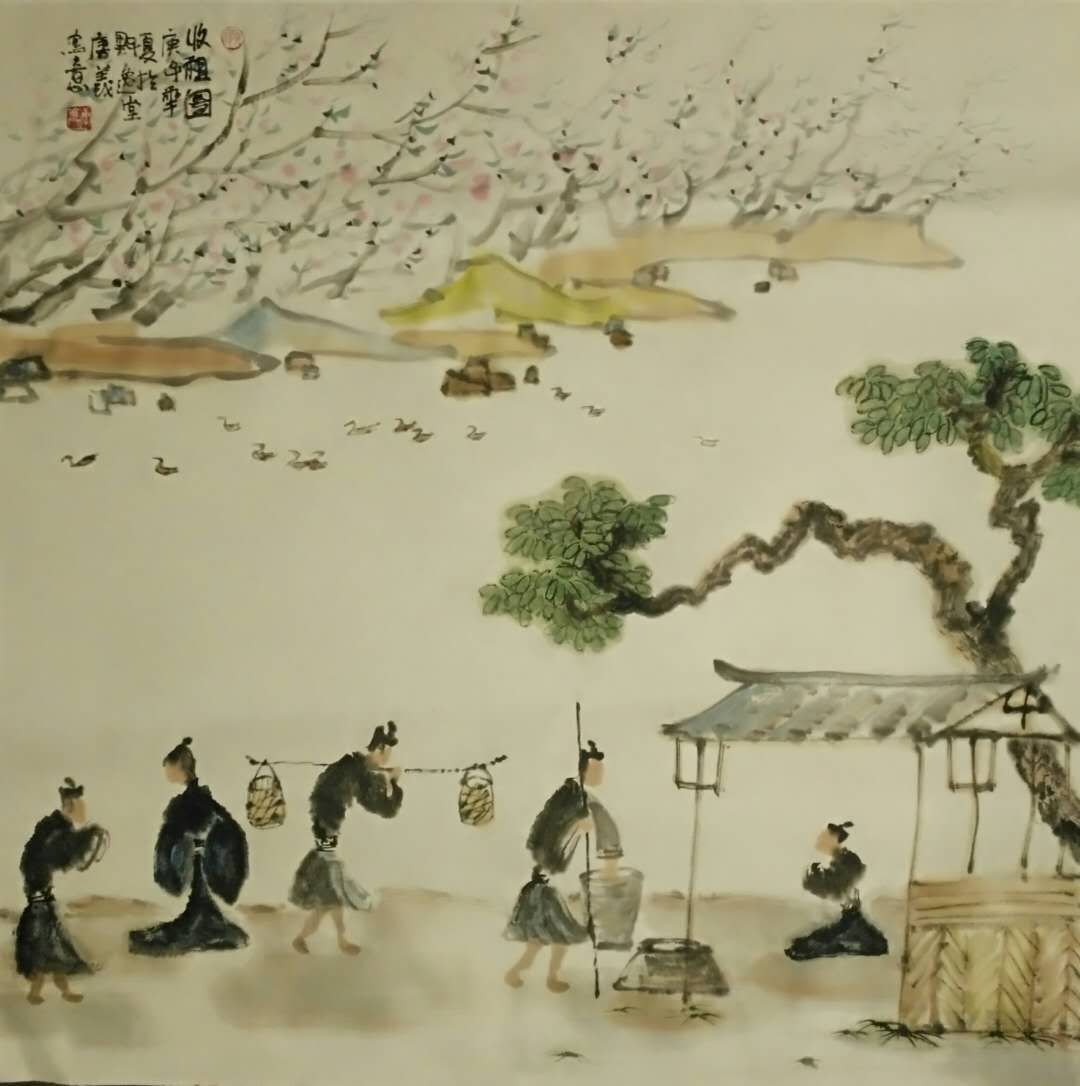 为了把对美的独特感受形之于笔墨,唐义先生长期致力于对汉风古韵的国画创作,他大力研究并借鉴汉代画像砖的构成表现,另辟蹊径地开创出一种有着自然之美和恬淡古韵的蜀人渔耕绘画图式,此画境风格清奇、古意芳菲、线律近人,在赏心悦目际就有桃源诗意流淌于画幅间,正如石壶所言:画贵有自我!仅此,他已从摹古进而到了自我。