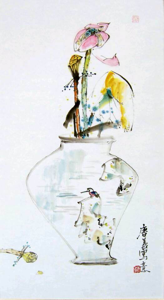 唐义擅长写意花鸟、山水、人物等。经数年潜心探索,其画风自成一体,创新意识敏锐,唐义作画追求简、纯、疏、松,具备了真情和趣味,其绘画语言既彰显时代气息,又流露出东方文化的神秘底蕴,可谓“现代其外,传统其中”。他借笔墨传情,对形象语言只是意到而已,给人充分的遐想空间,而把全部功力用到一种空境中,线条干净流畅,极富乐感,色彩明快、靓丽,意境清新、舒展,充分体现了当代人对自然,质扑、阳光、和谐生活的美好憧憬,被视为当代国画艺术新动力之一。
