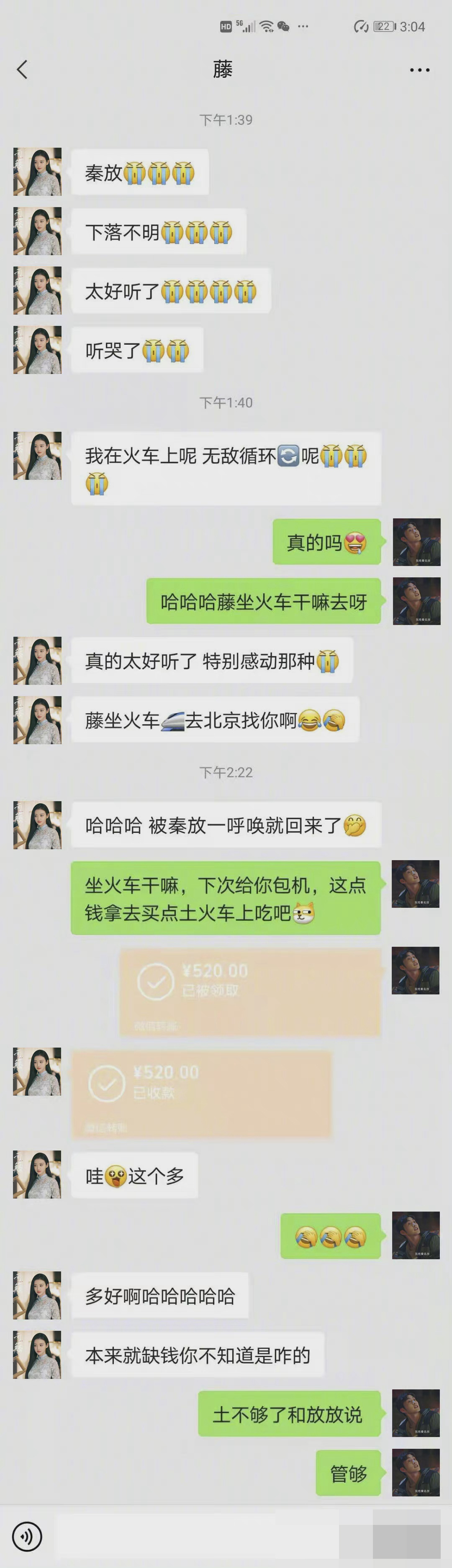 而让大家都磕到景甜和张彬彬cp的事情,一开始就是来自张彬彬和景甜的聊天截图,在聊天截图里景甜直接喊张彬彬为秦放,而张彬彬喊景甜为“藤”,当时聊天记录一放很多人都说嗑到了,而那个时候司藤才刚播,没想到真人就发糖了。