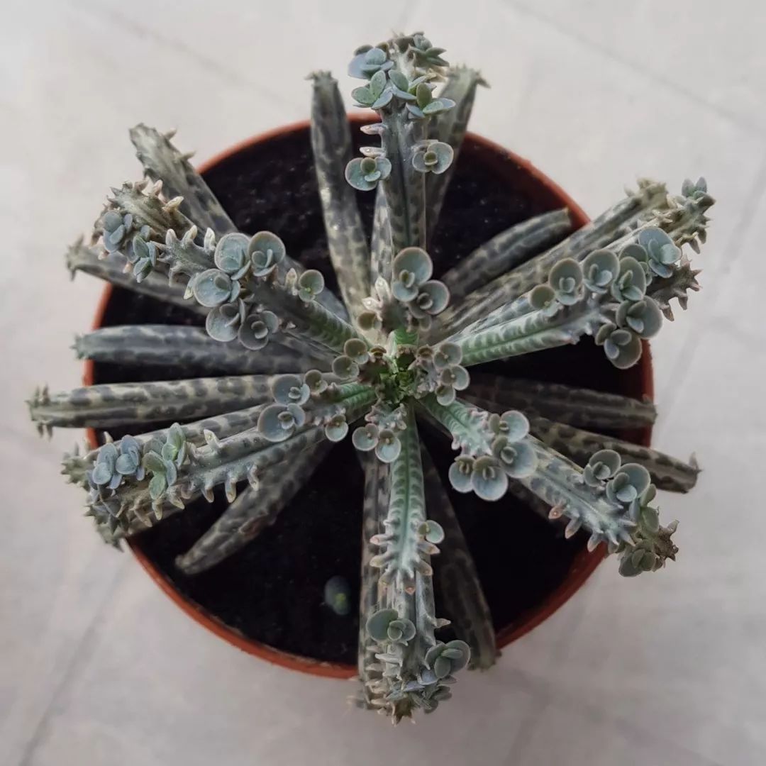 棒叶不死鸟还有一个特性,那就是非常耐旱,耐荫性也非常好,只不过在阳光较多的地方,植株会更加紧凑,生长会更快,但棒叶不死鸟长得太快也并不是好事,容易过度蔓延,我们不妨将它养在一个避风的地方,避免叶子上的小侧芽掉落的太快。平常养护的时候,只要避免频繁浇水,加上环境温暖,基本上就是养不死的。