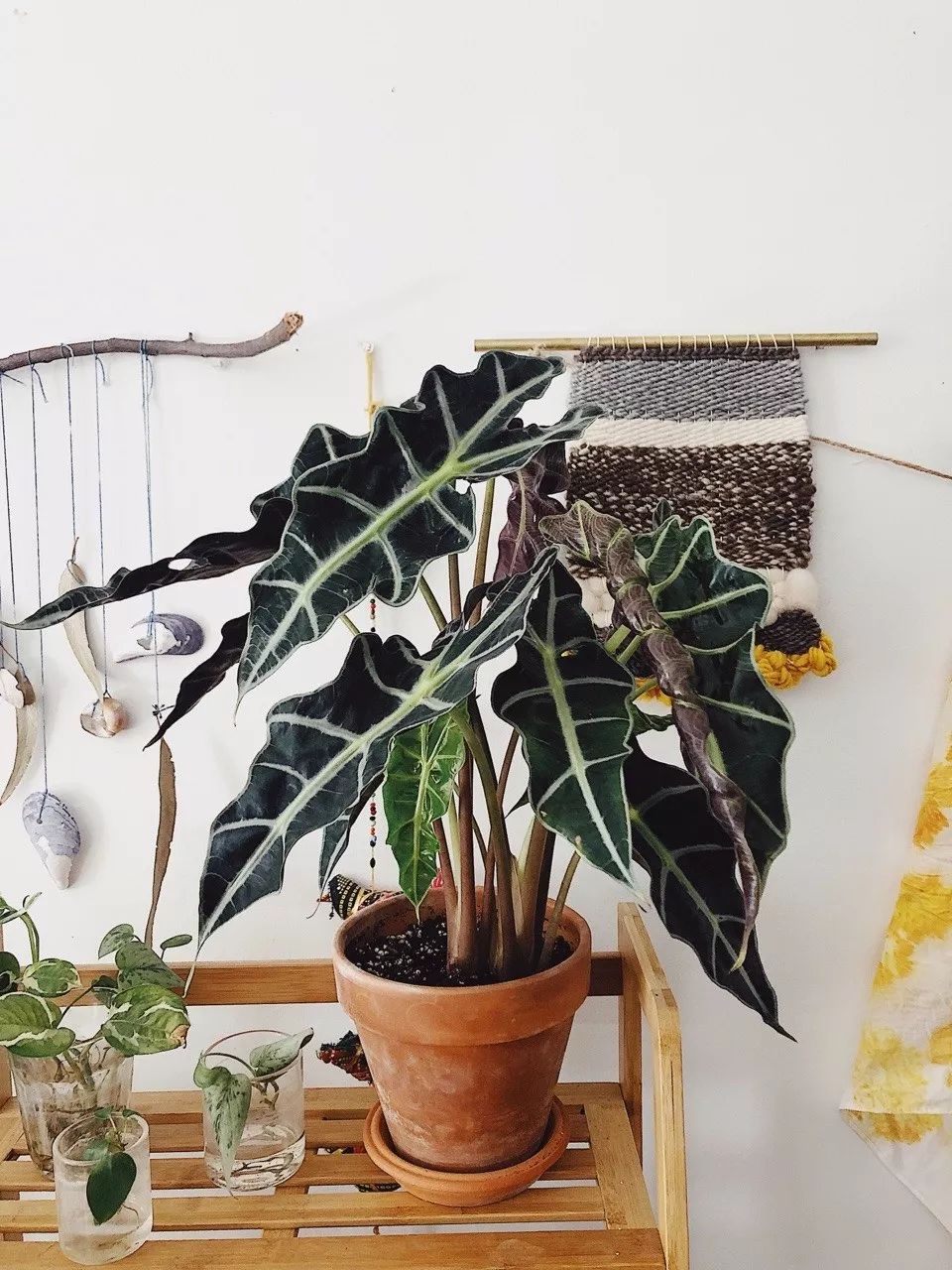 黑叶观音莲是一种比较小众的室内观叶植物,它的叶片一般都是墨绿色的,颜色比较有亮泽,它可以养在室内遮荫处,对水分需求不多,但是要有一定的空气湿度,不要养在暖气或空调旁边。
