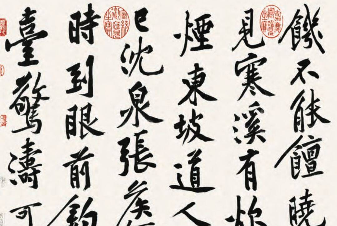 历代书家中,以内聚外展字势构筑自己风格者,首推黄庭坚。黄庭坚行书结体极力舒展笔画,咫尺千里之势,很有一种向外的张力,构成一种宏大气魄。