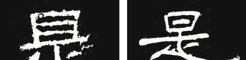 图13-5 《张迁碑》“是”、《孔宙碑》“是”
