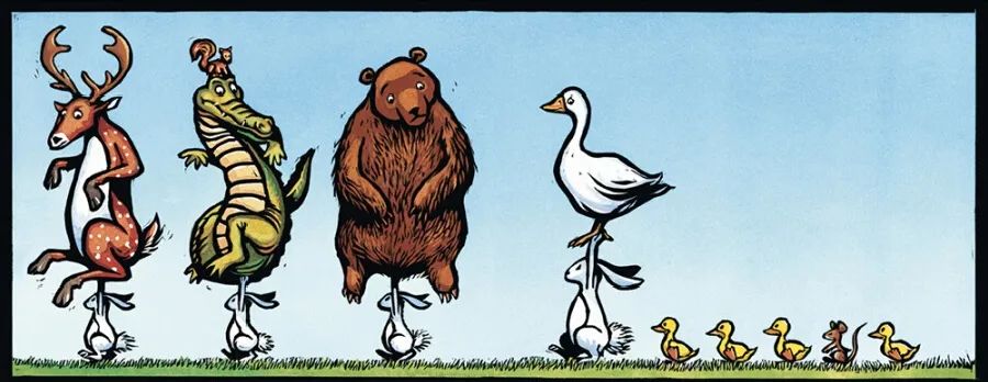 家长和孩子在读的过程中,还可以和他轮流扮演老鼠和兔子。特别是动物叠罗汉的那一页,特别搞笑!