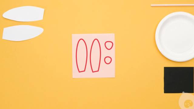 (2) 拿出粉色彩纸,剪出耳朵(内)和用作鼻子和嘴巴的两个小圆片
