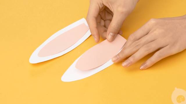 (1) 在白色彩纸上裁出小兔子的耳朵(外)