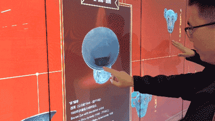 用手触摸馆中展示屏上的文物