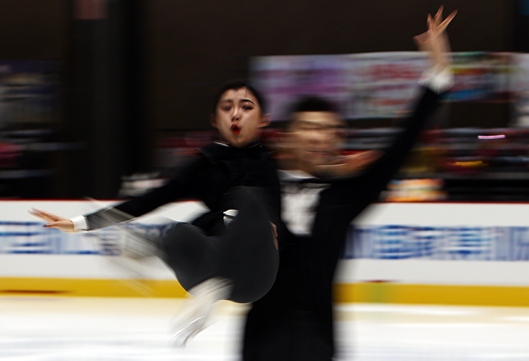 图为3月25日,隋文静(左)/韩聪在双人滑自由滑比赛中。新华社/路透
