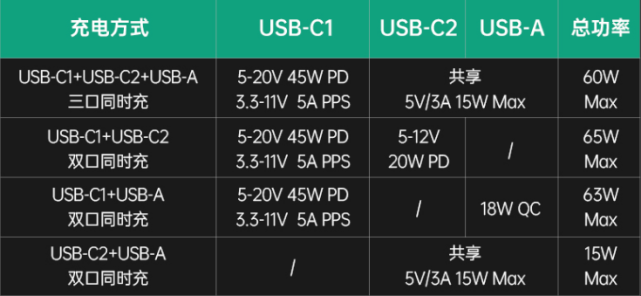 再看看C口,同样是基本都是绿的,OPPO和一加的独家协议估计还真不怎么受大家待见,PD3.0 、PPS 和QC4+满足市面绝大部分手机的快充需求,自然包括苹果的快充。两个C口的数据是一致的,就不去重复,直接贴一个商品页面的截图好了。