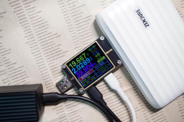 下面是实测环节,试充了一下征拓的X5充电宝,充电宝的电量还是比较满,所以充电功率在40W左右,最高是45W的功率。