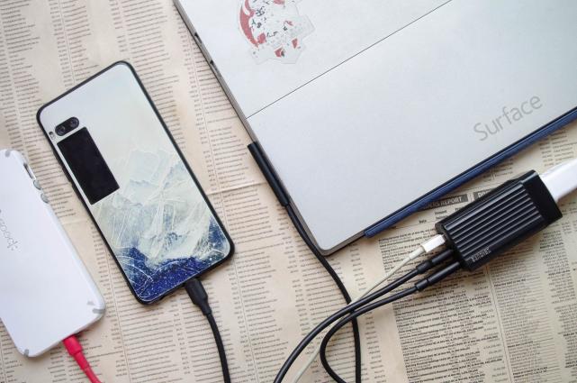 Surface Pro的功率需求不高,所以征拓SuperPort S3二代为两个手机,一个笔记本电脑充电都在功率上留有富余。