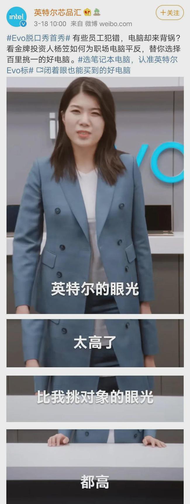 这回不是因为杨笠又说了什么金句,而是因为杨笠代言了英特尔。