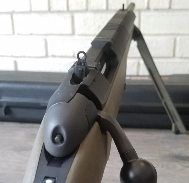 同时,这款枪还有个备用的觇孔照门,而这种觇孔相对正常的军用步枪要大一圈,也就是鬼环照门。这种照门大多数是放在霰弹枪一类上面,大概就是粗略地瞄了一下就能快速打出去的那种,对精度要求并不高。库珀的意思就是,这枪你得让我瞄准,但是不用瞄得太细致,快速开枪最重要。