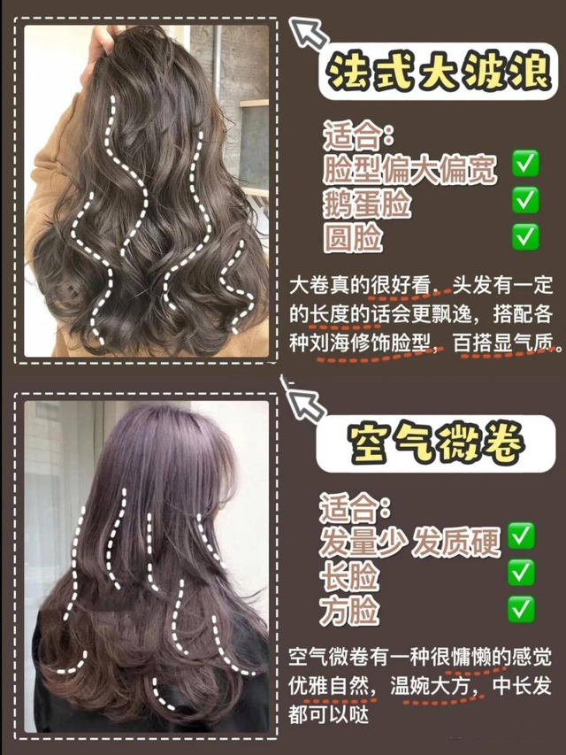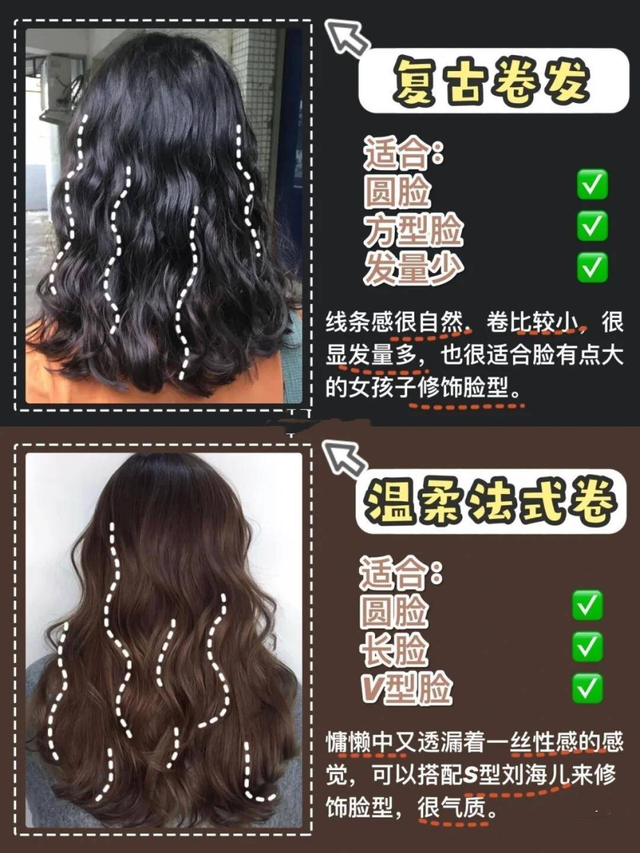 推荐脸颊两侧型的卷发。①避免厚厚直直的刘海,避免黑长直发型;②头顶不要太蓬松,可以考虑打造脸颊两侧的蓬松度,以达成视觉上的平衡;③推荐带有自然弧度的空气刘海。