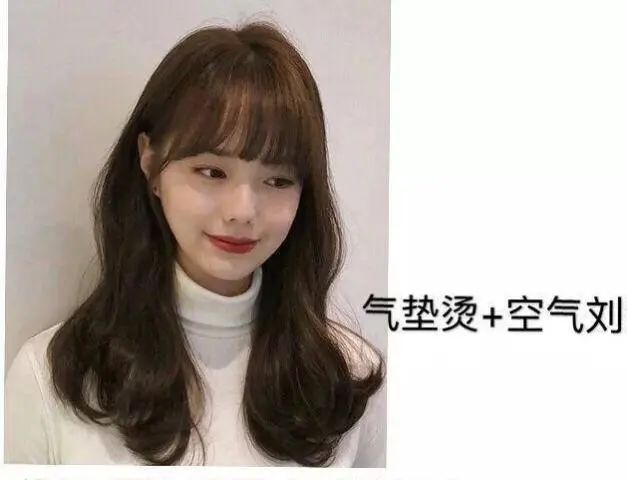 如果脸比较长,喜欢遮住额头的小姐姐可以试试气垫烫和空气刘海的搭配,又减龄又能很好地弥补脸型缺陷,是个不错的选择。
