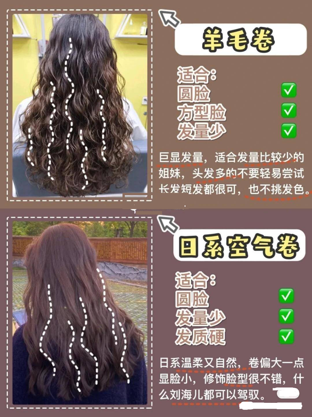 对于发量比较少的女孩子,烫发是再合适不过的一种选择了。尤其是羊毛卷,它的美就在与不规则与轻微的慵懒风上面,并且很好打理,舒适又洋气。
