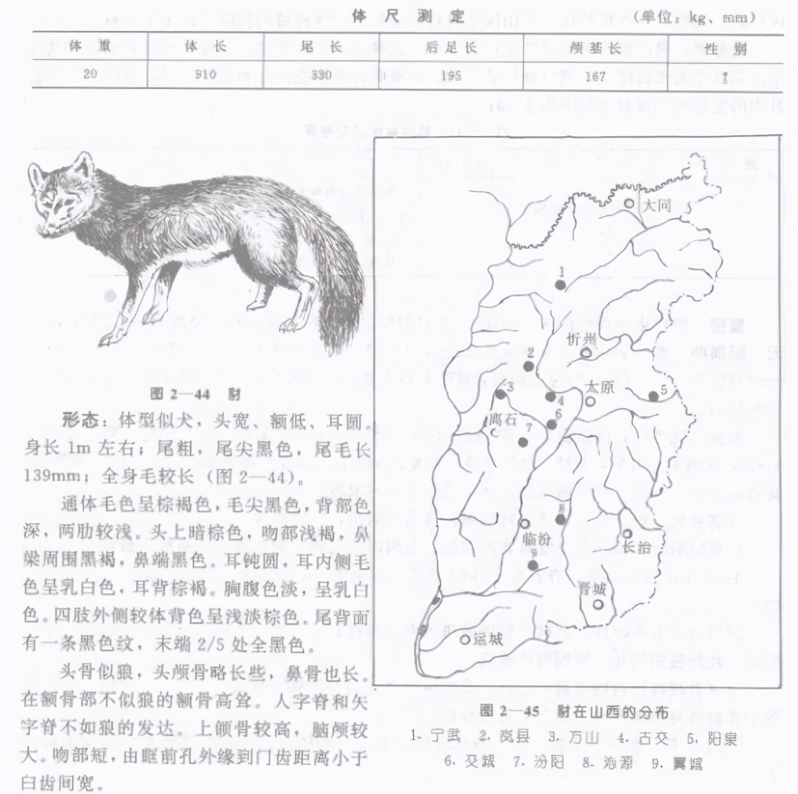 豺的体型数据