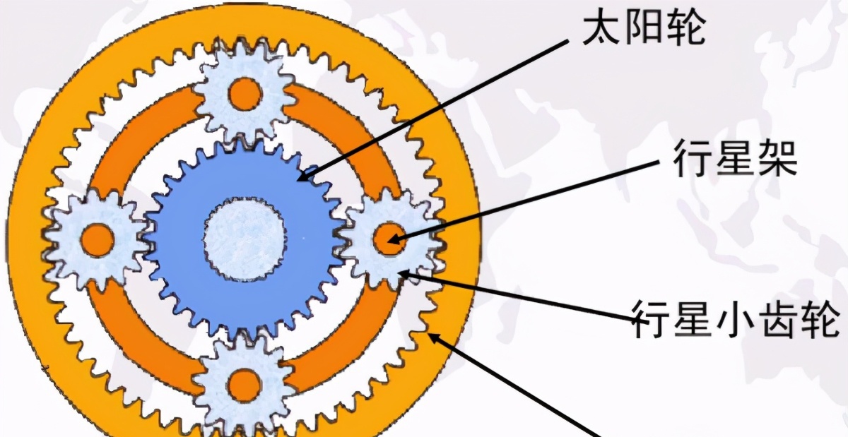 您结合上面的结构示意图看:行星架的转速,其实是外齿圈和中心太阳轮转速的“差速”。比如:外齿圈转速1000转/分,中心太阳轮转速900转/分,那么行星架的转速当然就是100转/分了。
