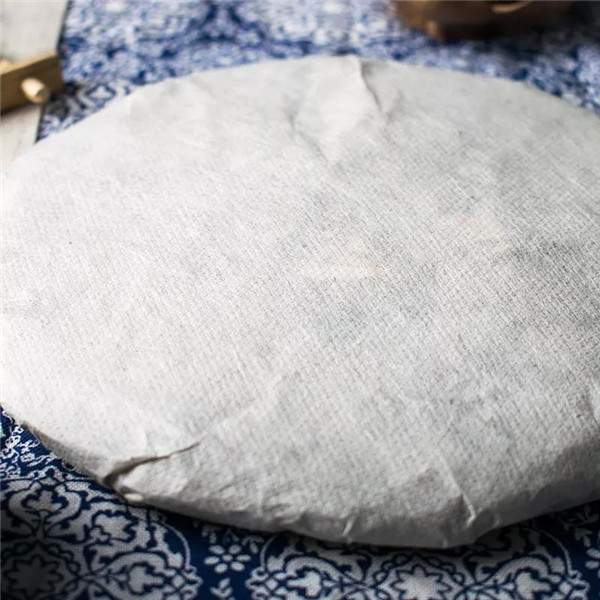普洱茶饼外面包的一层绵纸又和普洱绵纸不一样,茶饼外面包裹的绵纸柔韧性很好,抗拉能力也比一般的绵纸更强,既环保又卫生,透气。