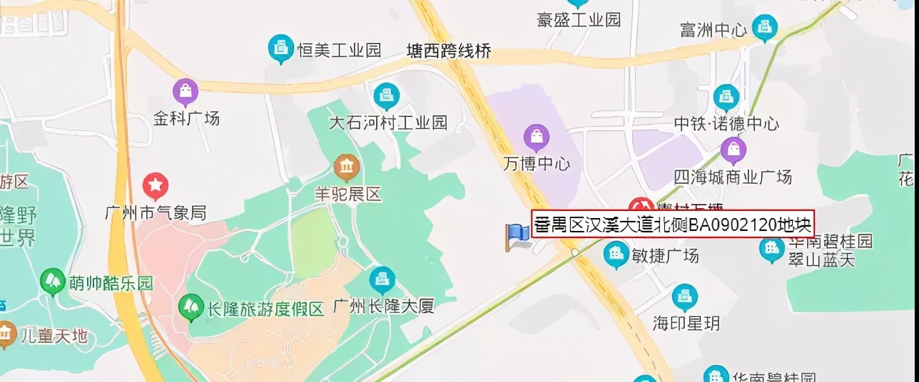 地块在汉溪大道以北,番禺大道以西,旁边有奥园总部大厦、长隆旅游度假区等地标,正处于番禺万博商务区核心地段中。