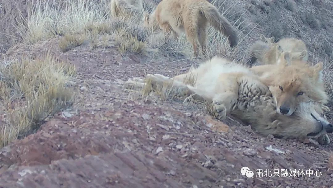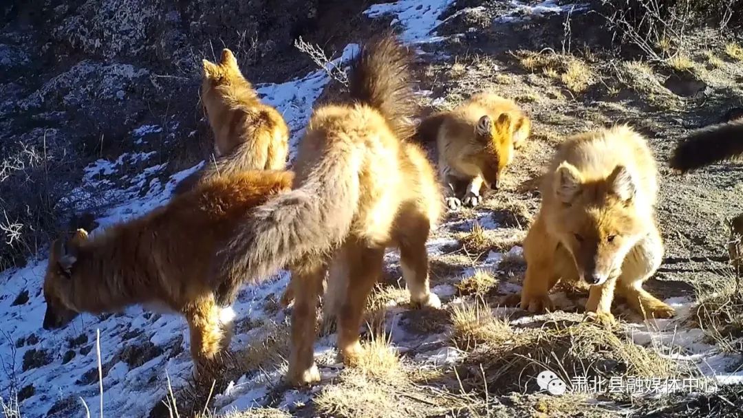 近日,祁连山国家公园酒泉分局工作人员在收回布置在国家公园腹地的红外相机时惊奇的发现了世界仅存的北方豺群活动的画面。