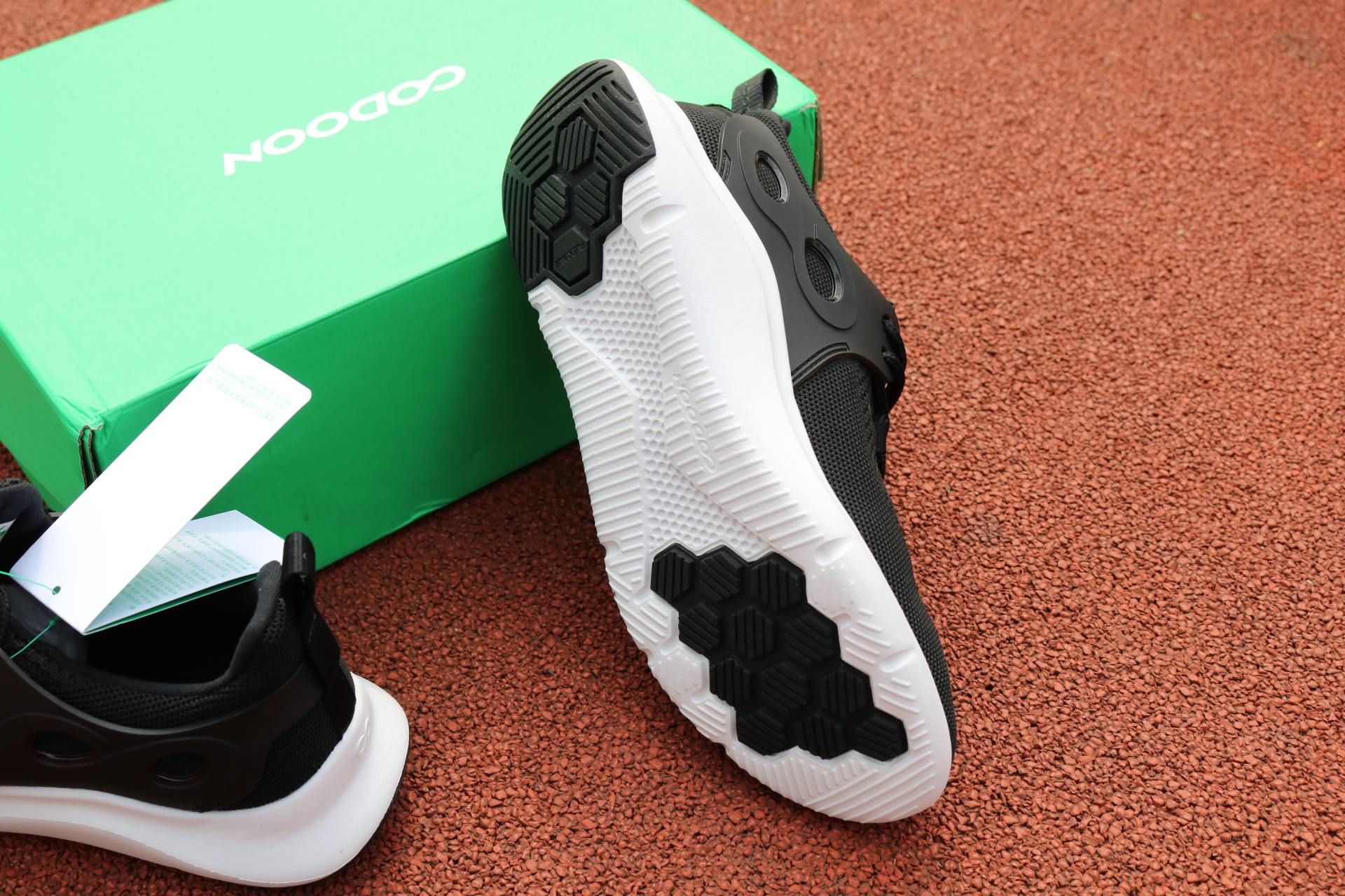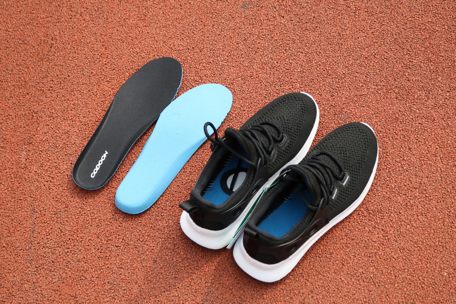 鞋垫采用了海绵质感的材质,可有效排湿、保持脚底干爽、抑菌减臭的作用,在左脚鞋的内侧可以搭配咕咚内置芯片进行运动数据监测功能。
