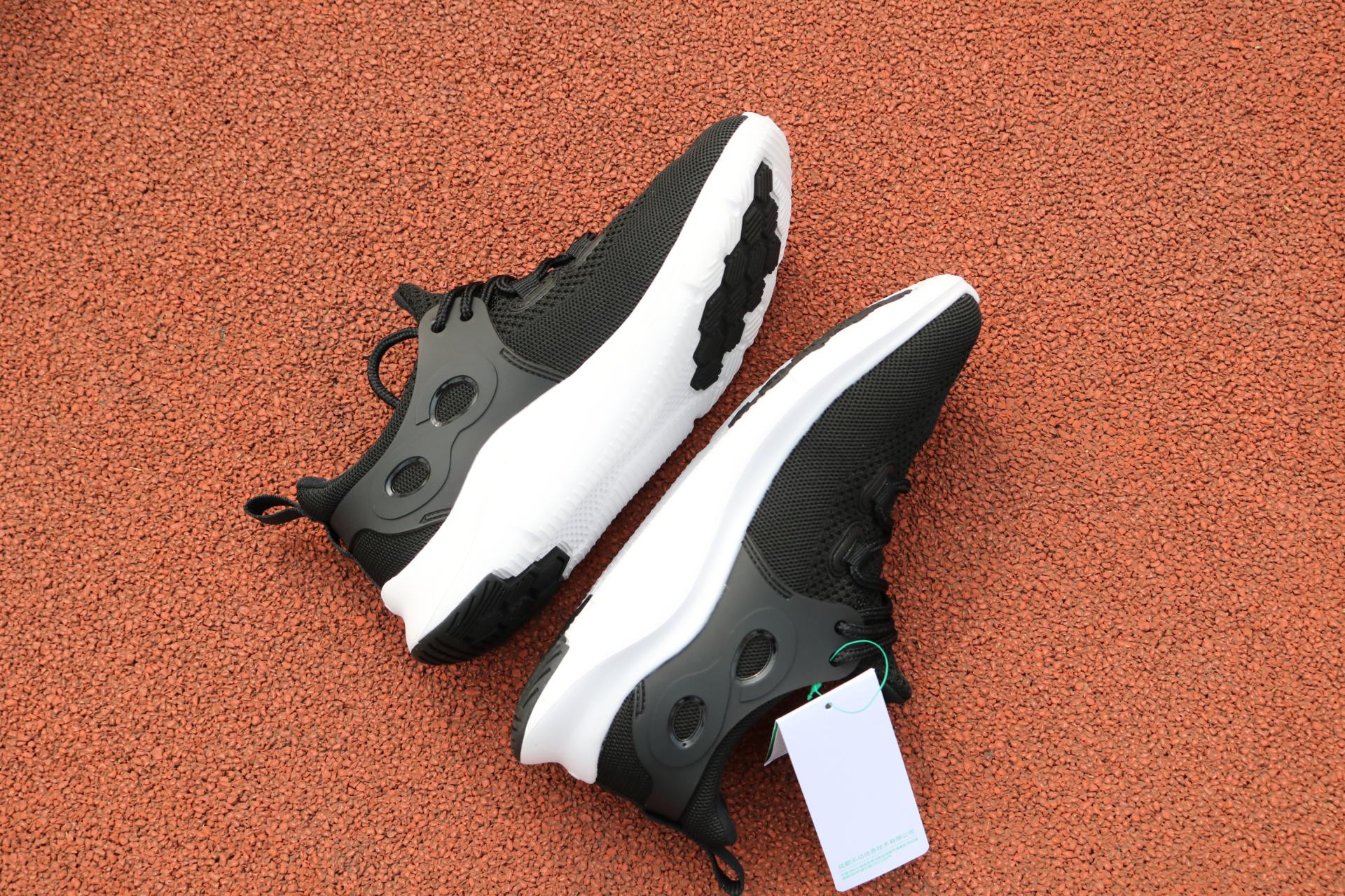 此款跑鞋拥有男女通款的悠然白、轻酷黑两种颜色,也为女性用户提供了活力粉的颜色。而图中这款为女性的轻酷黑颜色。