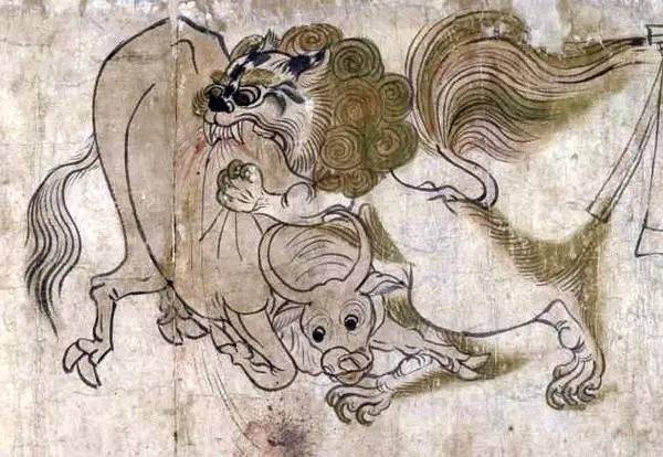 快来人啊门口的石狮子和路过的牛打起来了!