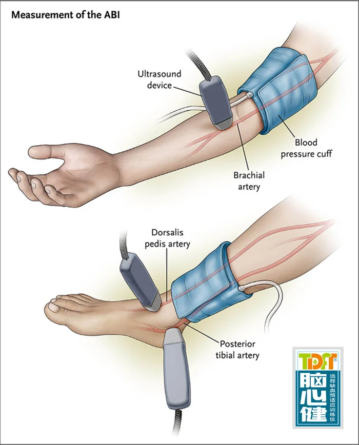 踝臂血压指数是踝动脉收缩压与肱动脉收缩压的最高一侧值之比,是筛查下肢动脉狭窄的公认无创指标,可评估心脑血管硬化。踝臂血压指数可用来发现外周动脉疾病。正常值为1.0~1.3,<0.9提示下肢动脉疾病。当下肢收缩压低于上臂收缩压时,还应当考虑主动脉弓狭窄的可能。