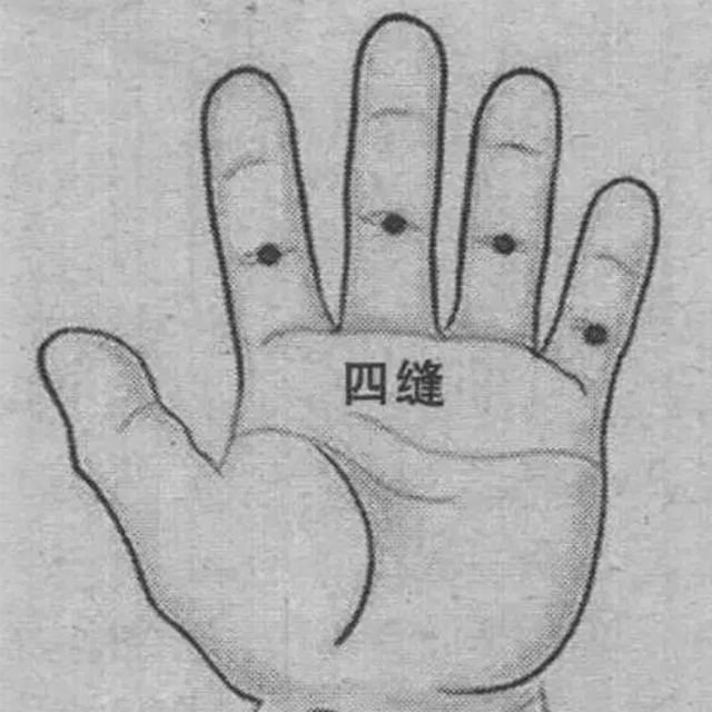 四缝是经外奇穴,是消宿食、化积滞的专用穴。四缝原本被医家用来治疗小儿消化问题,后来证实,成人使用四缝效果也非常好。如果遇到消化不良的问题,就可以找四缝解决,按摩就行,最好是用大拇指用力掐按,效果很神奇。