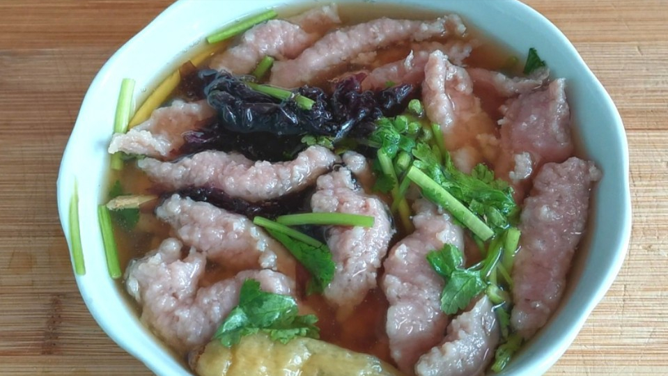 福鼎肉片,它是福建一道很有名的传统美食小吃,这道菜已经有好几百年的历史了,大街小巷都能看到它的身影,很多人都拿来做早餐,那汤水烫嘴的感觉,肉片吸收了汤汁的鲜香,Q弹爽滑,肉片中加入少许香菜和泡椒,让肉片的爽滑中带着香菜的香气,泡椒的酸辣味,让你吃到停不下来。