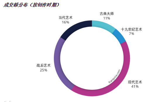 现代艺术、战后及当代艺术的市场份额保持稳定。仅古典大师艺术份额增长,成为2020年的价值避风港。战后艺术及当代艺术这一块,市场展露出明显的“趋势”——对街头艺术、大型抽象画和具象绘画的偏好显著。