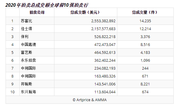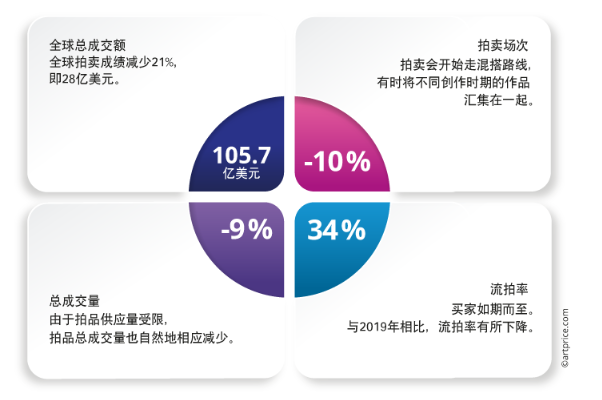 面对疫情,各国的反应不一。在法国、英国和美国,成交额下降了30%到39%,但中国(+2%)和德国(+11%)却在增长,尽管市场供应量缩减。凭借下半年古典和现代作品的亮眼成绩,中国重夺全球市场龙头宝座。