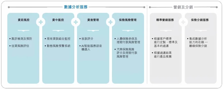 政策亦在利好这个领域。比较近的就是今年2月中国银保监会发布的《关于进一步规范商业银行互联网贷款业务的通知》,这是对之前2020 年 7 月发布商业银行互联网贷款管理暂行办法》的补充。两份文件都强调了商业银行须独立运行核心风险管理程序。新规对一般并无具备强大风险管理能力的中小型银行造成挑战,并因而增加了对外部金融科技的投资,特别是大数据分析服务,从而提高风险管理能力以符合监管要求。