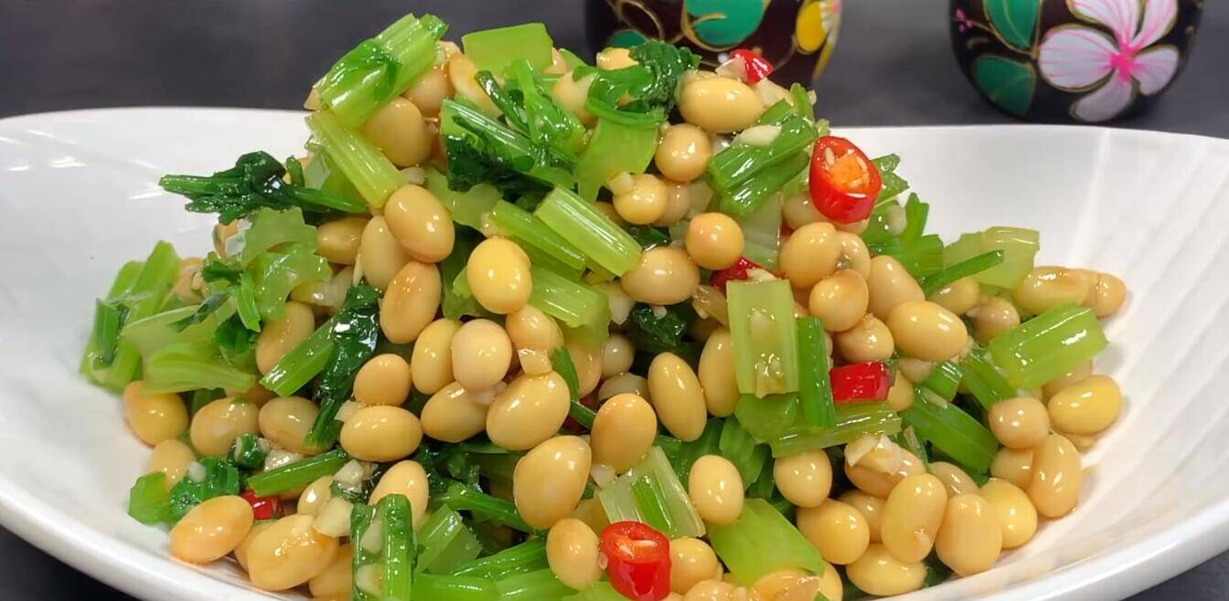 食材准备:黄豆、芹菜、大蒜、小米椒、陈醋、生抽、芝麻香油、辣椒油、盐