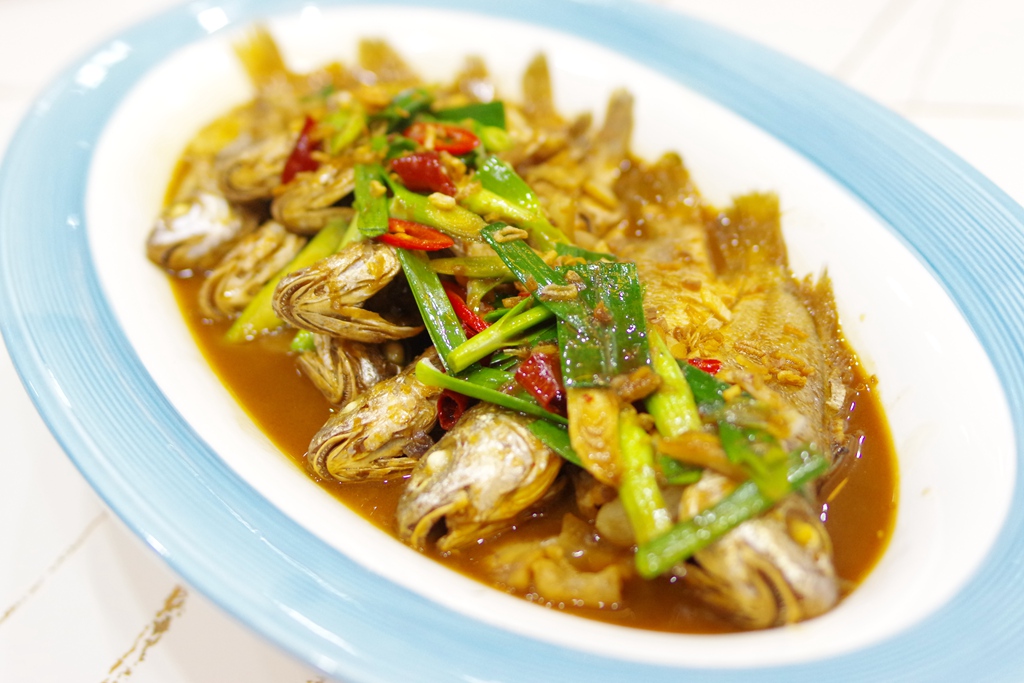 酱油水梅童鱼,和其他菜系的红烧鱼相比,最明显的差异在于鱼没有经过油炸或煎,追求鱼肉本身的鲜和嫩,姜的用量也非常少,主要靠酱油提鲜,尽可能原汁原味。