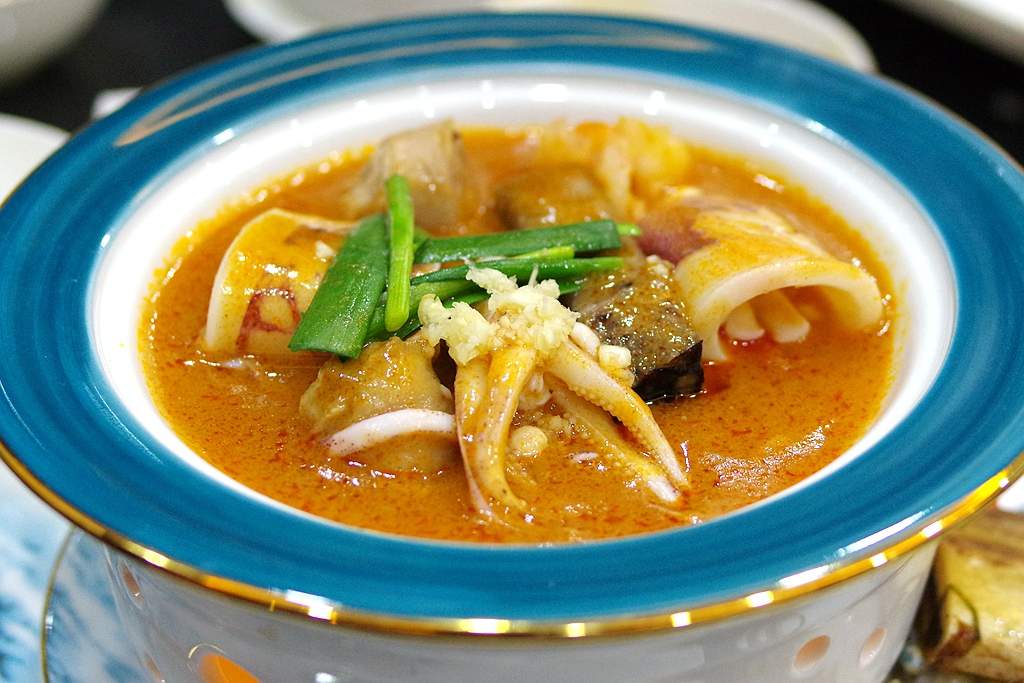 沙茶鱿鱼煮米血,吃过沙茶面的朋友很清楚上面这图其实也是一碗较为黏稠的浓汤,鲜嫩的小管和扎实的米血,口味层次感也颇具匠心。