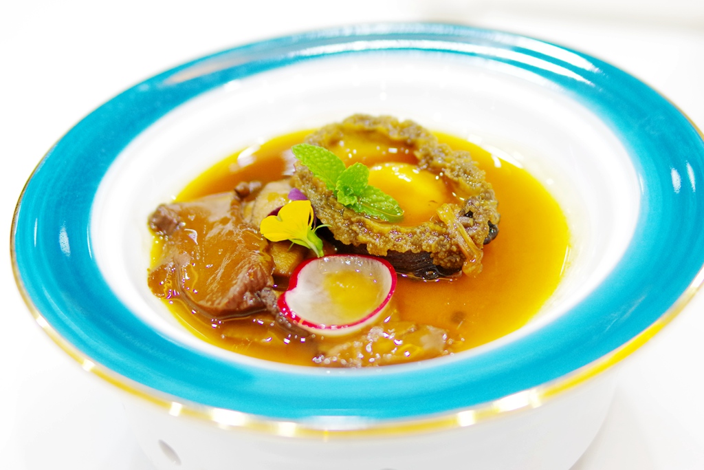 鲍汁鲜鲍:相对于粤菜中浓稠的鲍汁,闽菜的风格更显清淡。