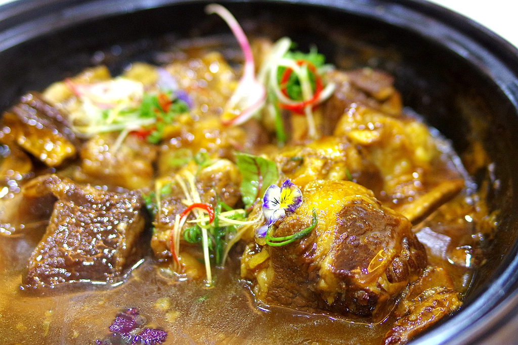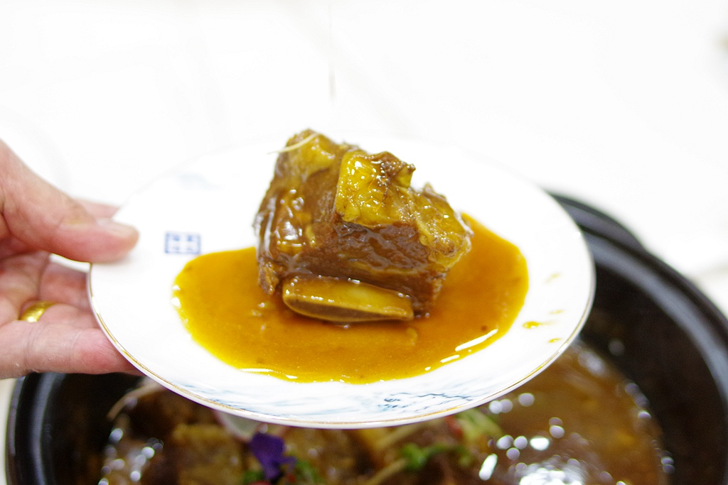 牛肋骨切大块,豪放的分量加上长时间慢火焖炖,肥肉处于即将化开的临界状态,质地原本较结实的牛肉丝也已酥烂,吃起来非常过瘾,用那包含牛肉精华的汤汁拌饭吃太香了。
