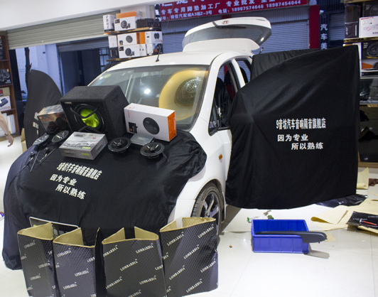 由于车主对音质要求比较高,我们采用美国哈曼JBL的喇叭升级音响。用泰国伊曼宝DSP和功放推动,加强音质的效果。在尾箱部位加装有低音,满足车主对低音的要求。做好四门隔音,保障音响工作环境。下面就来看看改装过程。
