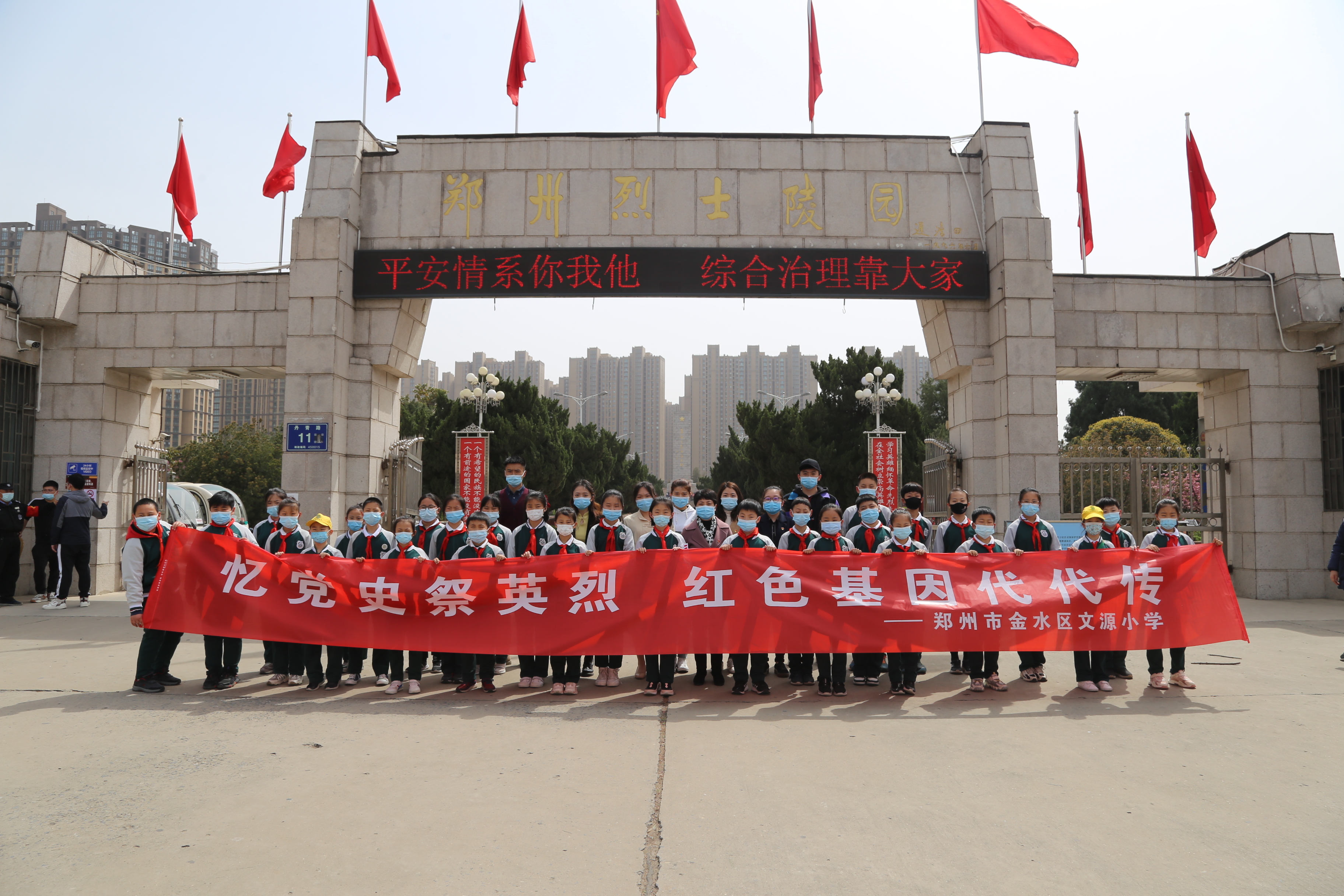 3月30日,文源小学部分党员教师和少先队员代表们排着整齐的队伍,来到了郑州烈士陵园。在革命先烈纪念碑前,队员们通过唱队歌、向烈士们敬献小白花、重温入队誓词、朗诵革命诗歌等形式,共同缅怀为保卫祖国领土完整、捍卫祖国尊严而献出宝贵生命的革命烈士。在了解了烈士的事迹后,学生们心潮澎湃,心灵无比震撼,纷纷表示要努力学习,不辜负先辈的期望,用实际行动让烈士鲜血染红的旗帜永远飘扬在祖国的蓝天。