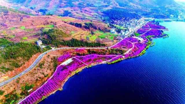5万株樱花、10万株鲜花在美丽的抚仙湖畔盛放500亩,形成2.5公里樱花海岸线,堪称世界一绝,让游人在五彩斑斓的樱花盛景中感受烂漫的春色美景。