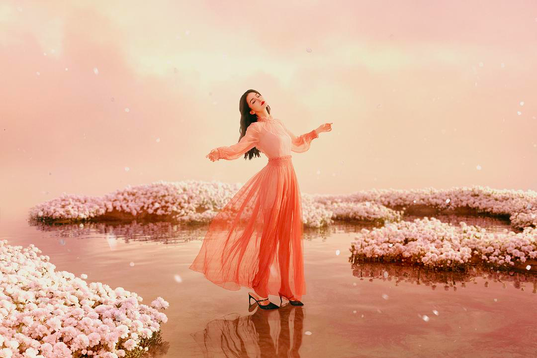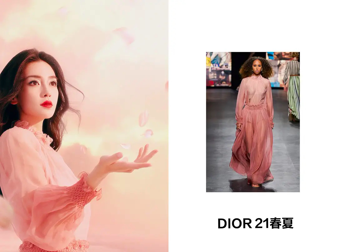 首先是Angelababy的造型大片,身着Dior2021春夏系列粉色长裙,看着还挺清新的,网友都说感觉有点儿早年间她拍养生堂广告内味儿了。