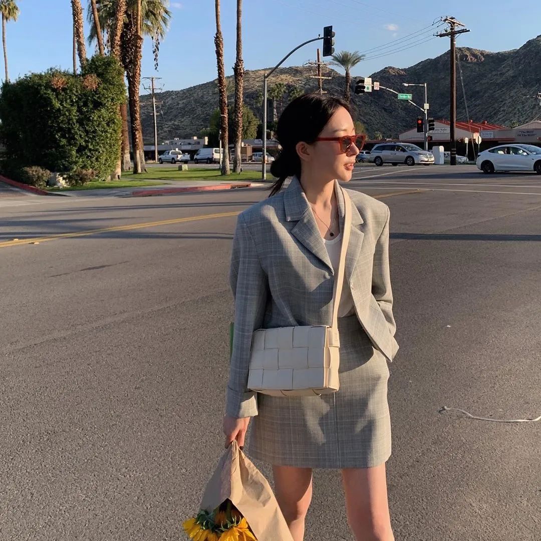 如果你是搭配小白,那么建议你一定要试试西装短裙的套装,毕竟轻而易举就能穿出时髦感,而且也不会出错。