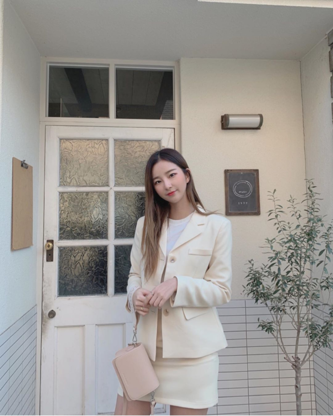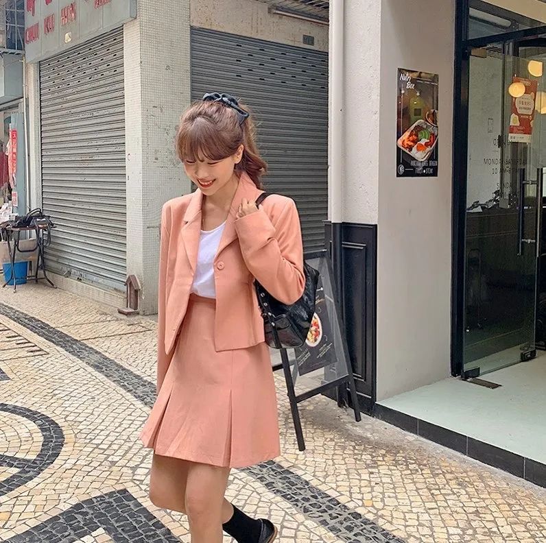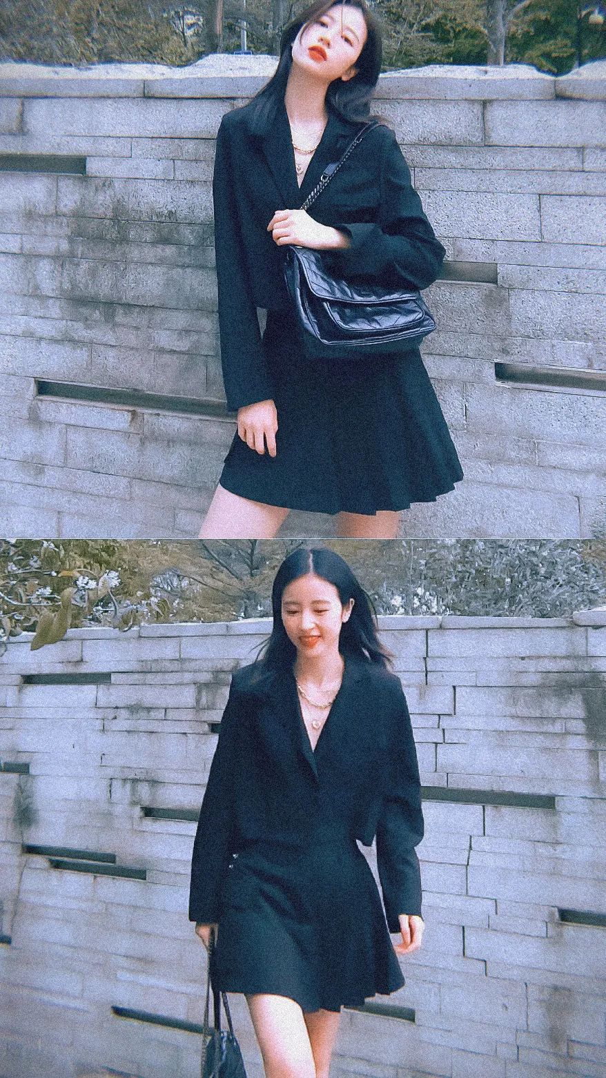 娇小妹子穿上短西装+A字短裙,打造好比例,做个可盐可甜的春日少女!
