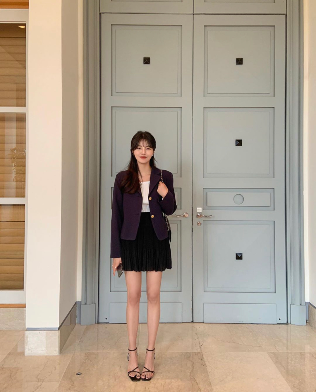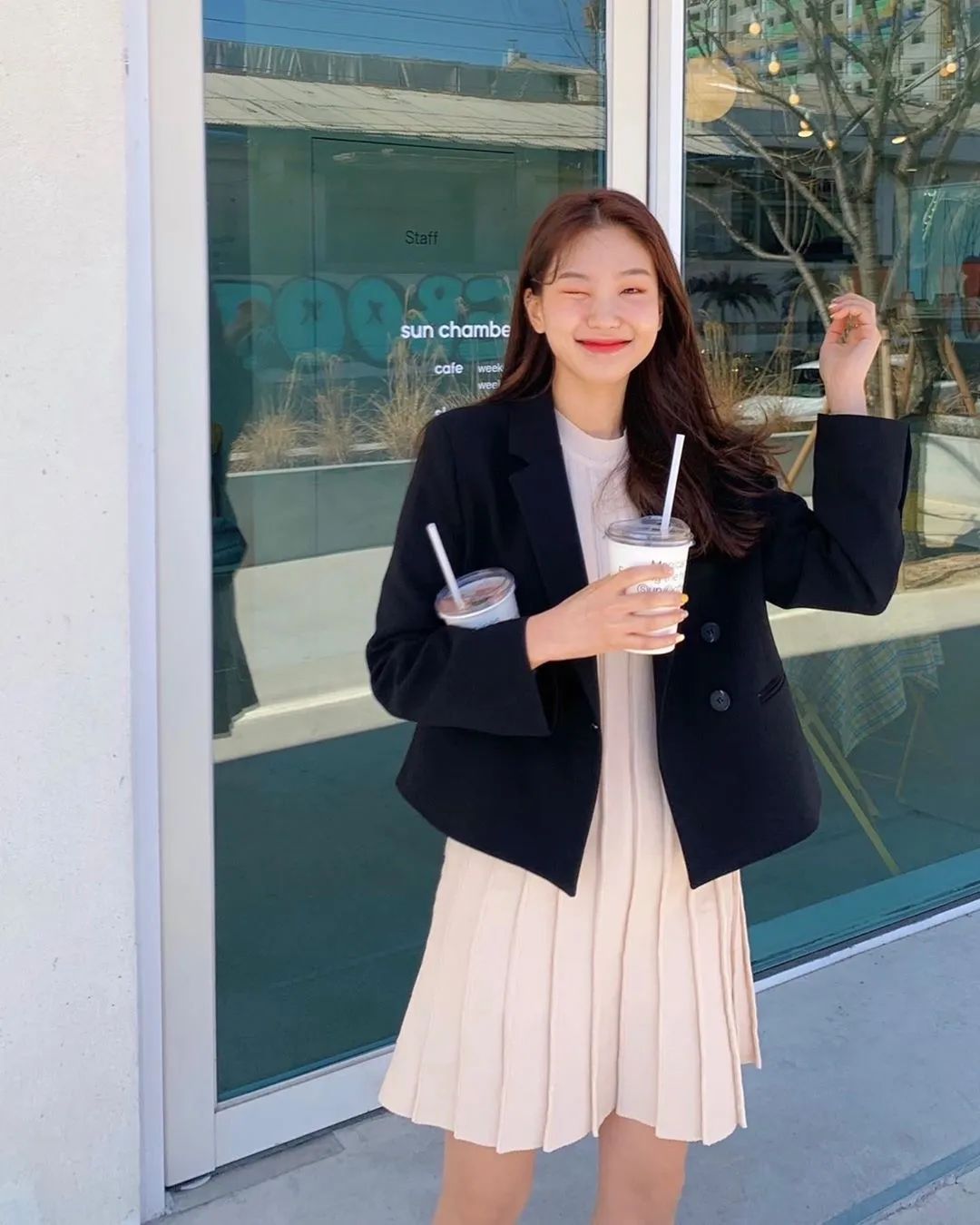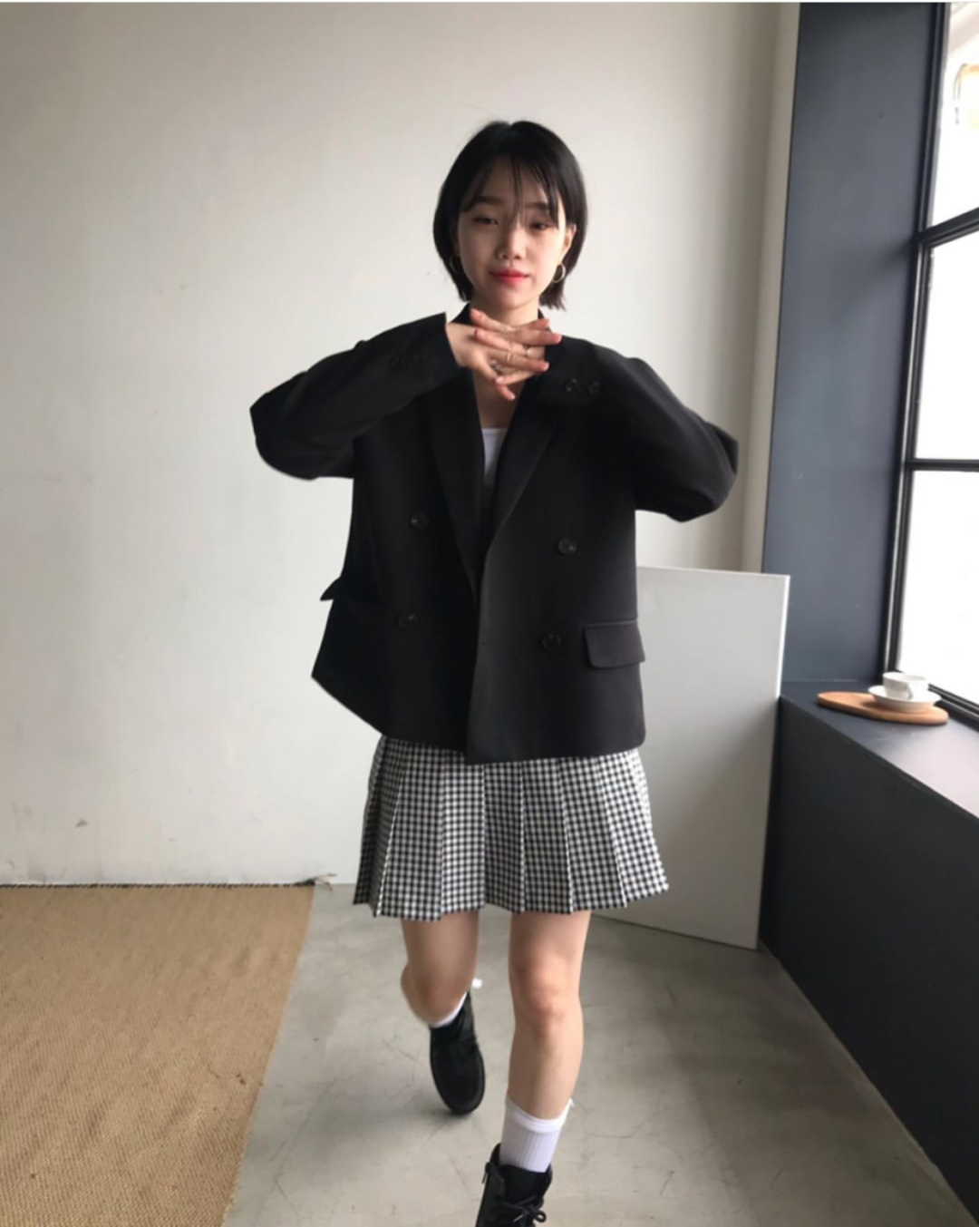 娇小妹子穿上短西装+A字短裙,打造好比例,做个可盐可甜的春日少女!