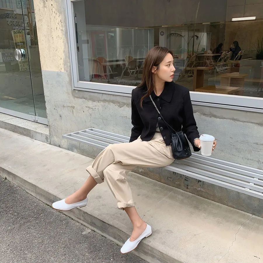 除了搭配黑色,奶茶系的卡其色套装也依旧万能不出错,喜欢日系感的甜妹,不妨从细节增加精致感。