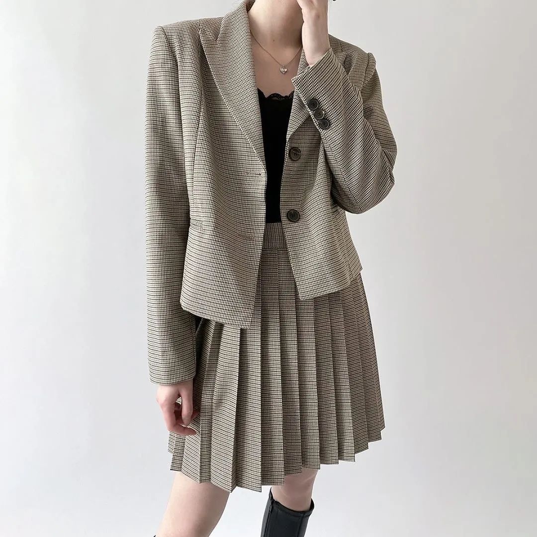 西装这种自带严肃bgm的单品,就是要mix甜甜奶奶的百褶裙才有意思啊!