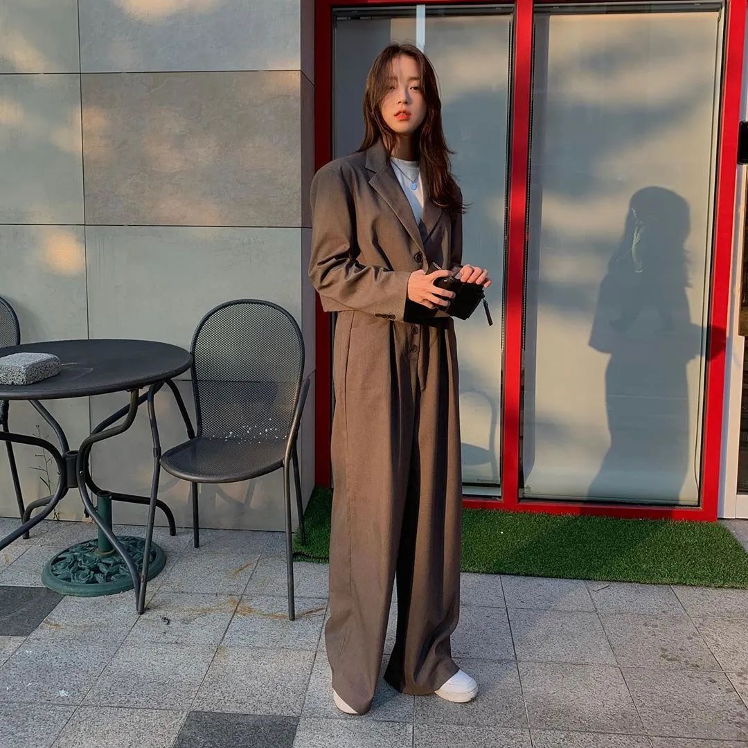 除了搭配裙子以外,西装+裤子就是一种比较常见的组合了,会更加方便,整体看起来也轻松不束缚。