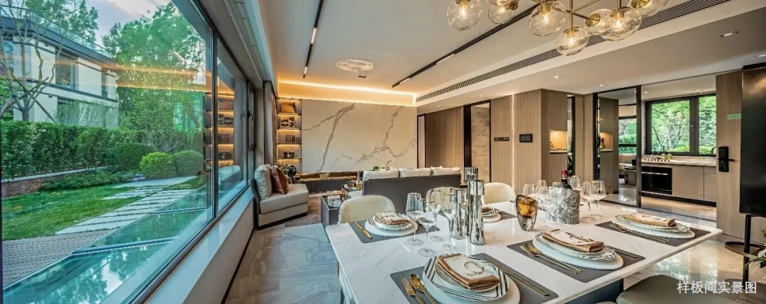 一进门就是面宽达到约7.4米的宽幕大客厅,采光观景都非常爽,客餐厨一体化设计,厨房大U型操作台。